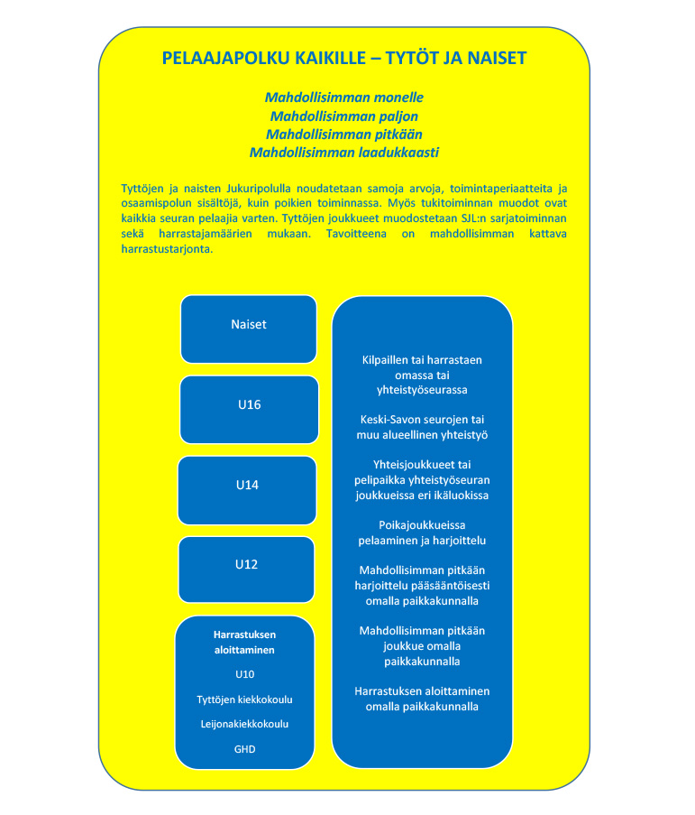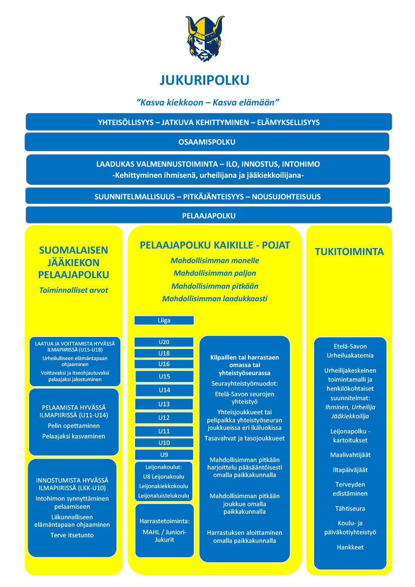 Jukuripolku eri vaiheineen, muotoineen ja tukitoimintoineen antaa jokaiselle lapselle ja nuorelle mahdollisuuden harrastuksen aloittamiseen, lajista innostumiseen ja lajin parissa pysymiseen jopa koko elinikänsä ajan. Jokaisen pelaajan pelaajapolku on aina henkilökohtainen ja ainutlaatuinen matka, jossa jokaisella on omat motivaationsa, kehitysvaiheensa ja aikataulunsa. Vaikka ajattelu usein suuntautuukin joukkueen kilpailu- ja sarjatoimintaan, on se vain yksi osa kokonaisuutta. Toiminnan tukijalkana toimii osaamispolku, laadukas valmennustoiminta ja kattava tukitoiminta, jotka yhdessä pelaajapolun kanssa muodostavat Jukuripolun.